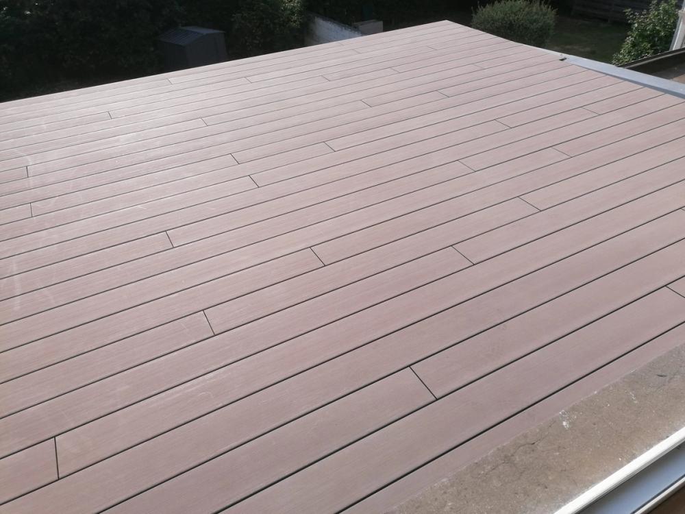 Rénovation et pose d'une terrasse en composite. En combinant la résistance du plastique avec l'apparence du bois, les planches de terrasse en composite sont plus solides et plus denses que le bois.