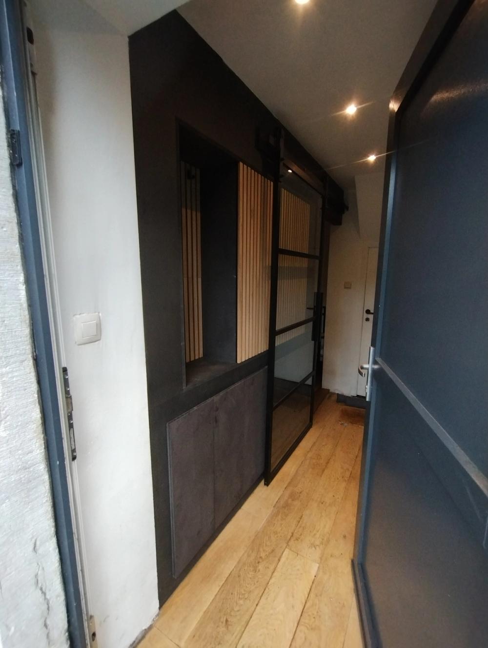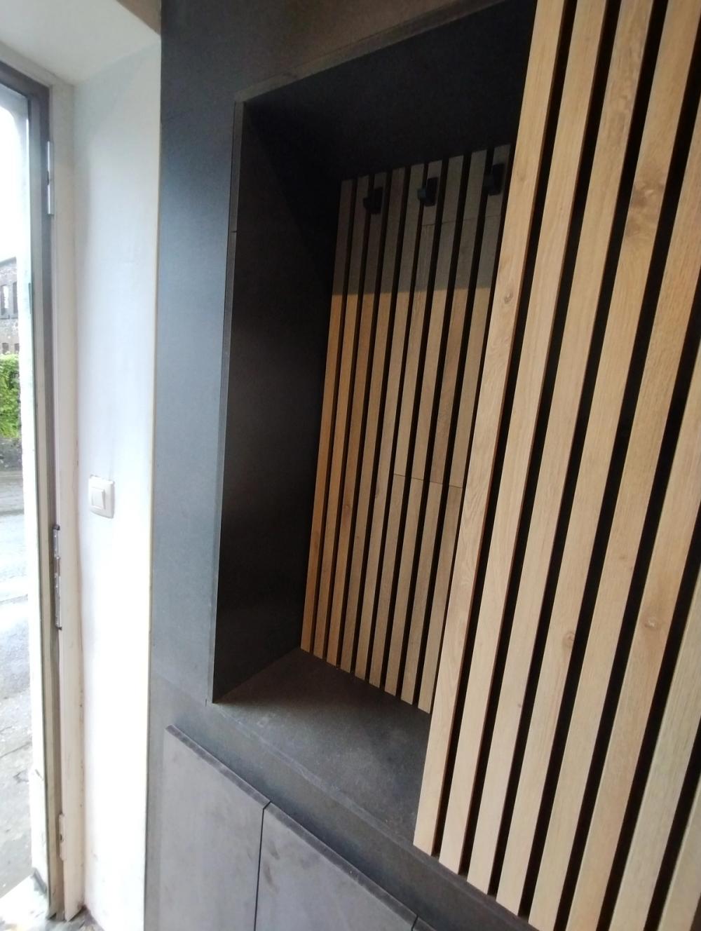 Aménagement d'un hall d'entrée permettant du rangement et la séparation avec le salon.